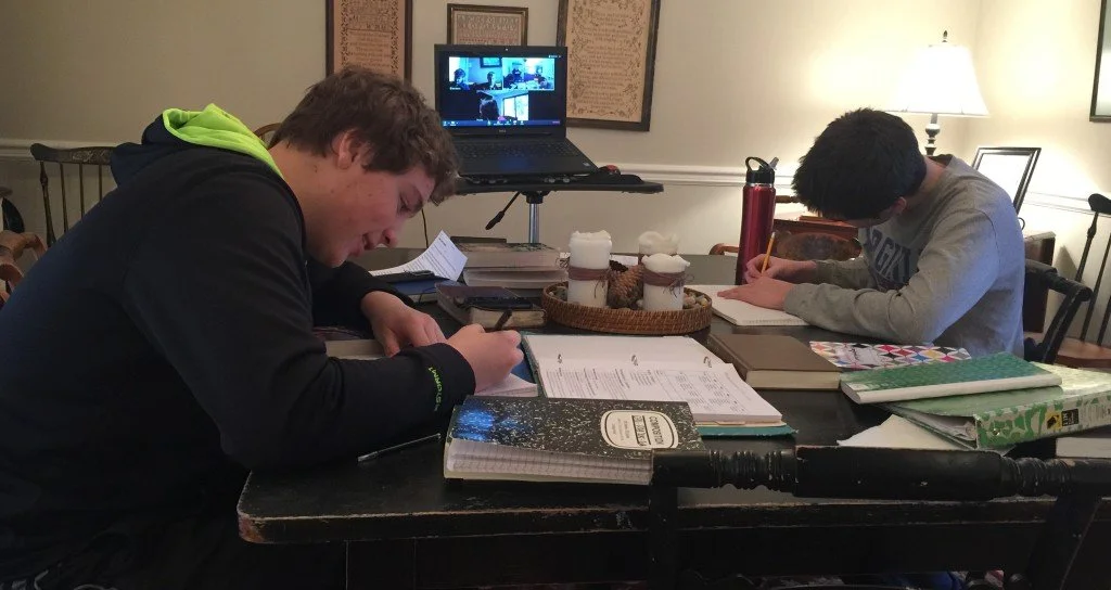 In the Art of Commonplacing, Part 3, I mentioned this new habit we are forming in our week. Providence Prep meets each Friday morning for English studies, history, and literature (a four-year mostly Great Books class). The majority of our high school students' written work during the week is composed of reading journals and commonplace entries based on their current reading. Some of these are done as each student studies and reads during the week, but a good number need to be completed at the end of the week just before class. So we have instituted a Thursday afternoon Scriptorium devoted exclusively to those two things. After very brief greeting at the beginning, we stop talking and get to work. The current week's classical composer selection is playing in the background. All of our highschoolers are invited to join us. A few gather around our dining room table, but more gather via the Zoom classroom we set up. We offer this because we have folks from a large geographical area, and because we have folks who just cannot go out of their houses for one more thing in the week. You can see several students on the screen there—Zoom is almost like being in the room! Technology for the win—at least this time.